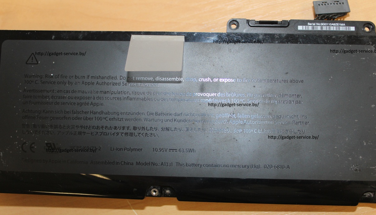 Мастерская Гаджет Сервис осуществляет замену вышедших из строя Li-ion АКБ (аккумуляторных батарей) на новые оригинальные (напряжение 10.95V; ёмкость: 5400mah (60Wh), черного цвета - не путать ноутбук белый может быть) в ноутбуках Macbook A1342 от компании Apple с предоставлением гарантии пол года. Батарея взаимозаменяемая с A1331, A1342.